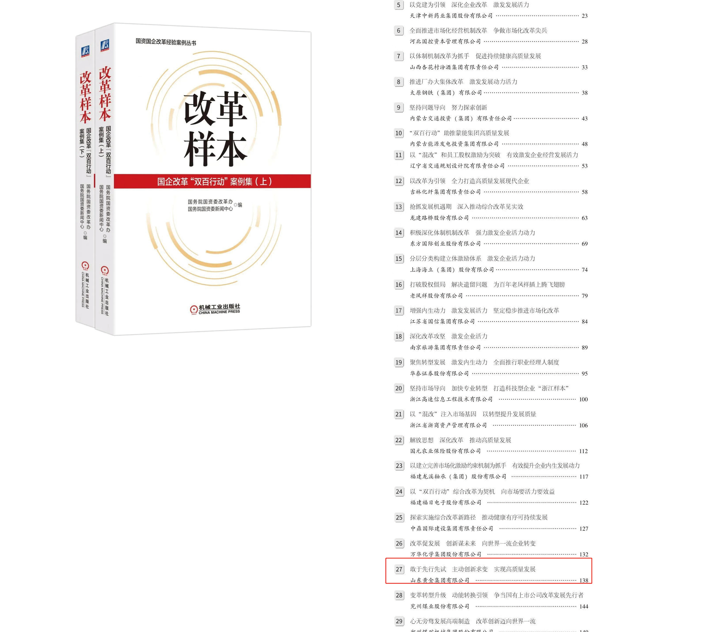 集團《敢于先行先試 主動創(chuàng)新求變 實現(xiàn)高質(zhì)量發(fā)展》的典型經(jīng)驗,與其他67家地方“雙百企業(yè)”的改革案例一起入選國務院國資委改革辦、國務院國資委新聞中心編著的國資國企改革經(jīng)驗案例叢書《改革樣本——國企改革“雙百行動”案例集》。
